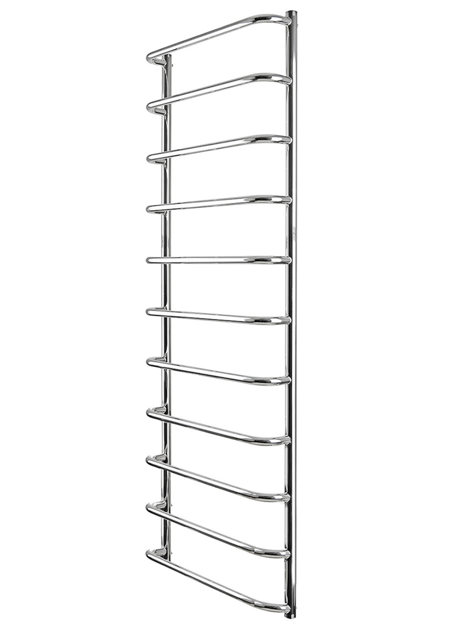 Сушарка для рушників "Маріо" Стандарт НР 1550х530/500. Розміри: висота — 1550 мм, ширина — 530 мм, глибина 170 мм, міжцентрова відстань для під'єднання — 500 мм, діаметр під'єднання G1/2". Приставка HP (Heat Point) — лінійка водяних і електричних сушарок для рушників економсегменту. Єдина відмінність — менша кількість перемичок, порівнюючи з виробами стандартного або преміумсегмента. Варіанти під'єднання: нижнє, діагональне та бічне. Кількість ребер — 11, стояки з круглої труби. Виготовлений із полірованої неіржавкої сталі без хромування. Варіанти покриття: полірований або сатин, чорний мат, білий глянець, золото, бронза. Для всесезонної роботи водяну модель можна переобладнати в комбіновану, встановивши ТЕН, рекомендовану потужність 300 Вт. Сумісні аксесуари: поворотні полиці та гачки для збільшення функціональності. Рекомендується під'єднувати сушарку для рушників за допомогою кранів Маріо. Гарантія — 50 років у закритій системі опалення, 5 років у централізованій.